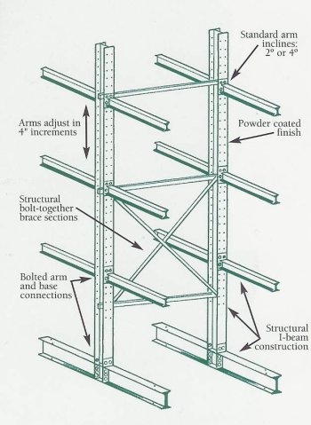 Cantilever racking is the perfect application for organizing, storing, or displaying irregular or extremely long material.